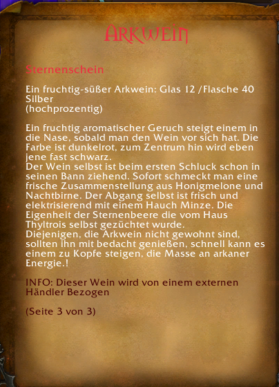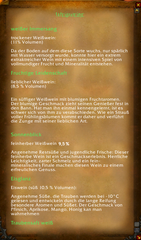 In Dalaran (Legion) besteht nun auch die Möglichkeit, Weine zu erwerben. Dies Soll auch für die Gegenfraktion die Möglichkeit geben, die Weine von Alvana Lichtmond zu erwerben. Engine: Noch ein Gläschen