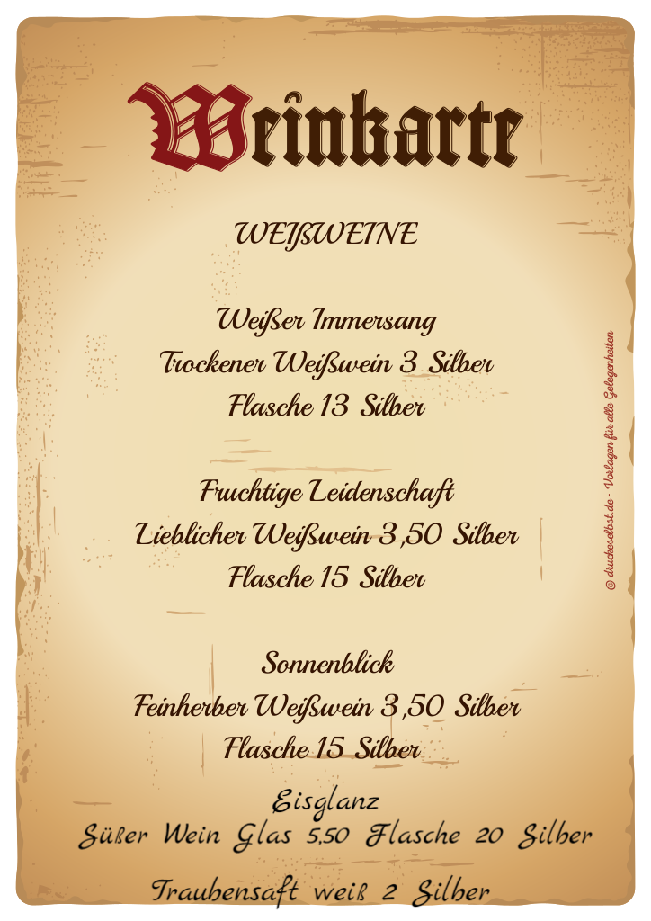 Weinkarten, Sortiment und Angebote